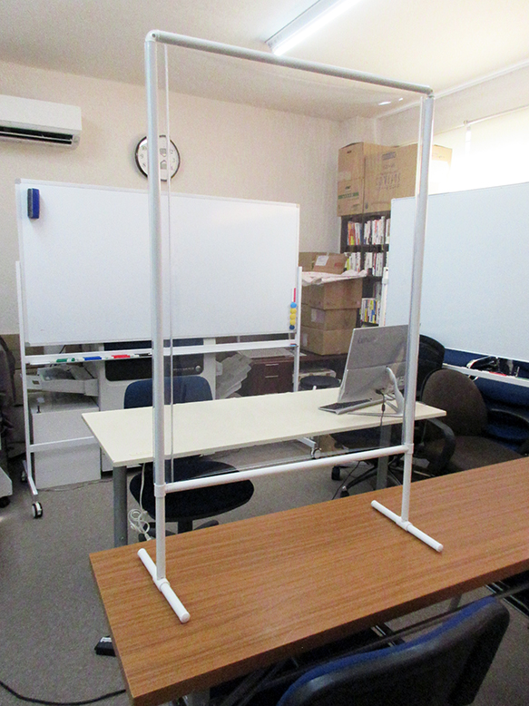 今回、ビニール製の衝立も新たに設置いたしました。